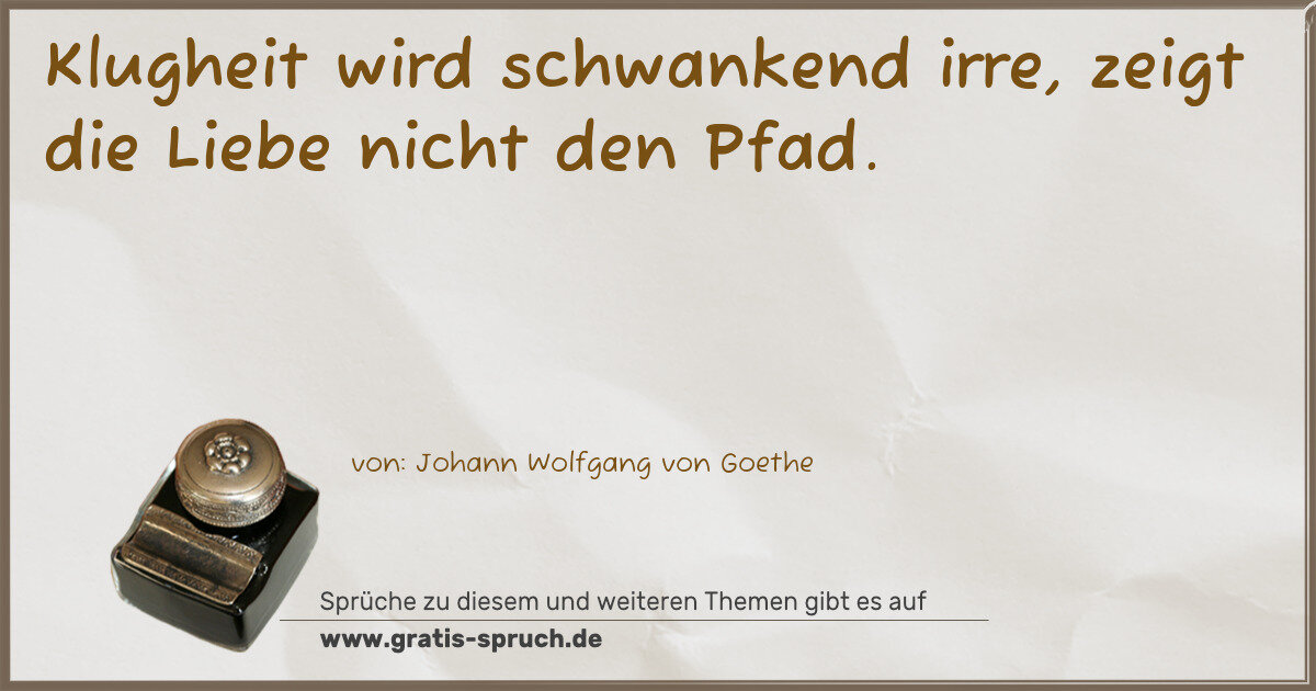 Klugheit wird schwankend irre, zeigt die Liebe nicht den Pfad.