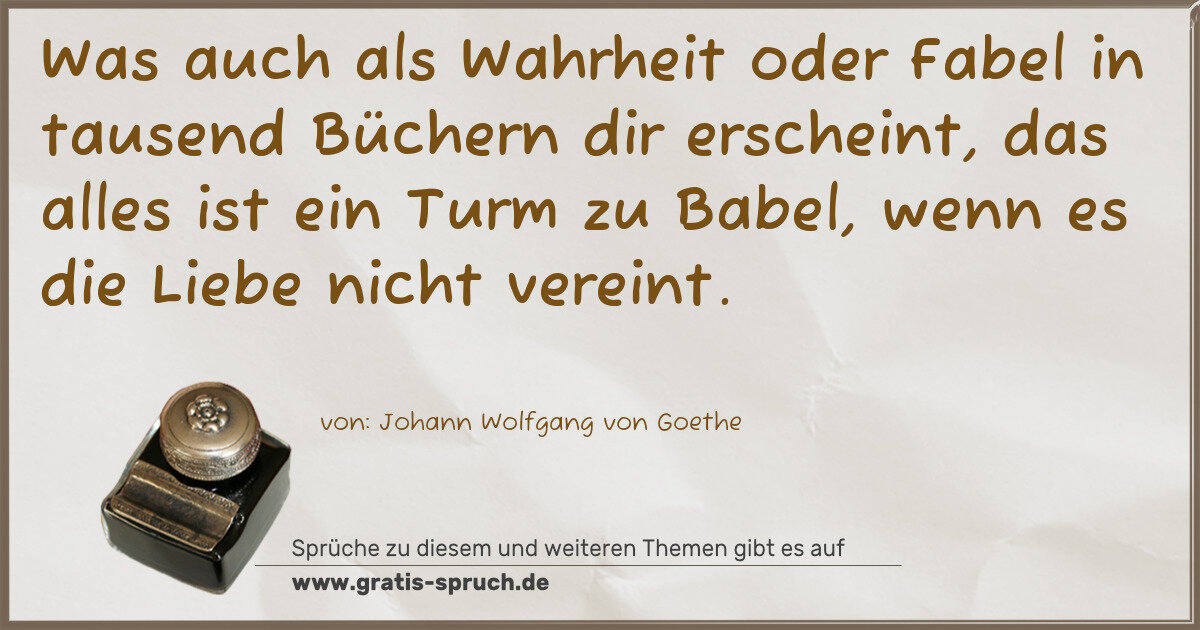 Was auch als Wahrheit oder Fabel in tausend Büchern dir erscheint, das alles ist ein Turm zu Babel, wenn es die Liebe nicht vereint.