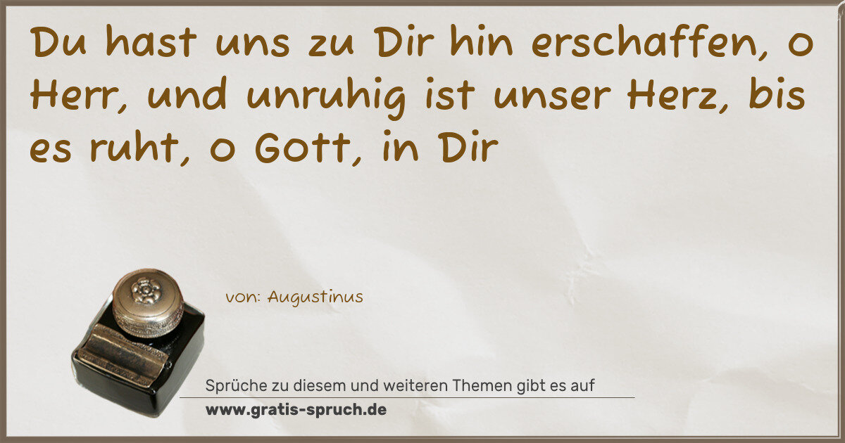 Du hast uns zu Dir hin erschaffen, o Herr, und unruhig ist unser Herz, bis es ruht, o Gott, in Dir