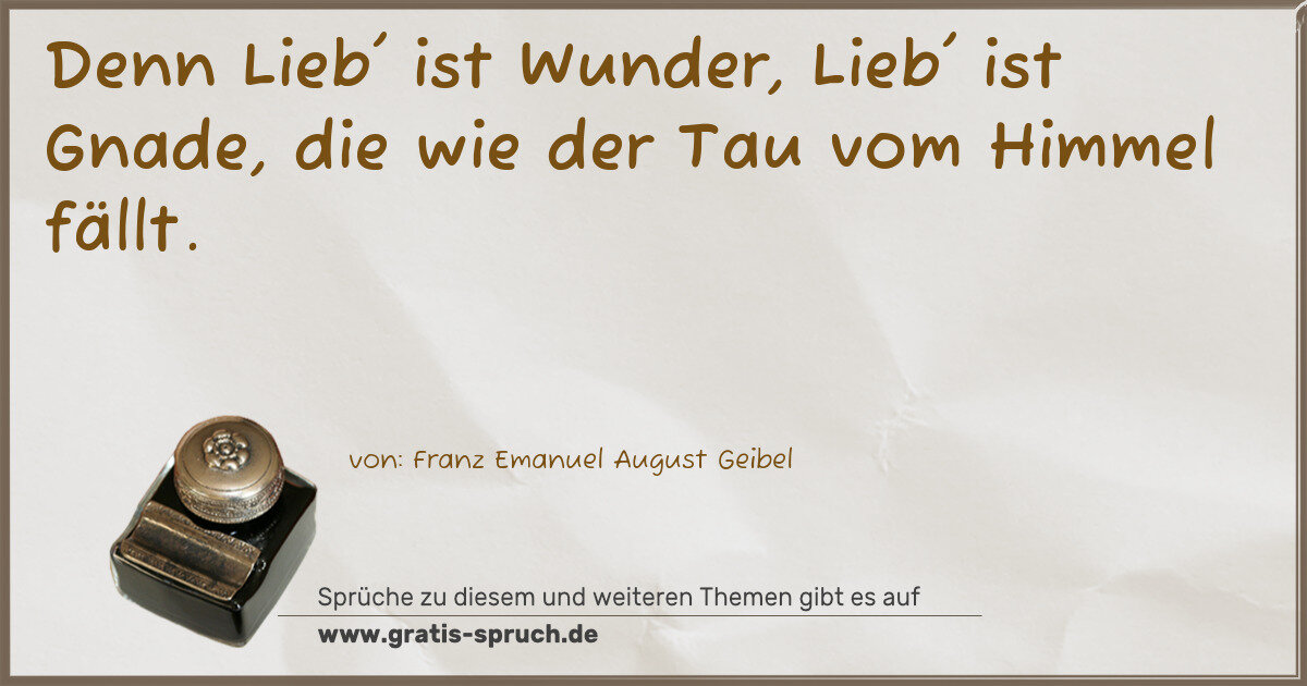 Denn Lieb' ist Wunder, Lieb' ist Gnade, die wie der Tau vom Himmel fällt.