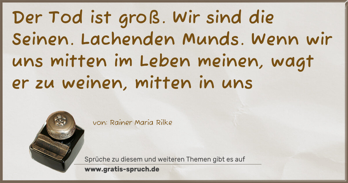 Der Tod ist groß. Wir sind die Seinen. Lachenden Munds. Wenn wir uns mitten im Leben meinen, wagt er zu weinen, mitten in uns