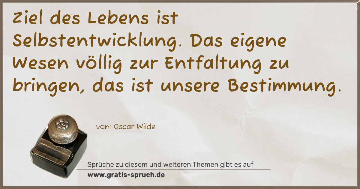 Ziel des Lebens ist Selbstentwicklung. Das eigene Wesen völlig zur Entfaltung zu bringen, das ist unsere Bestimmung.