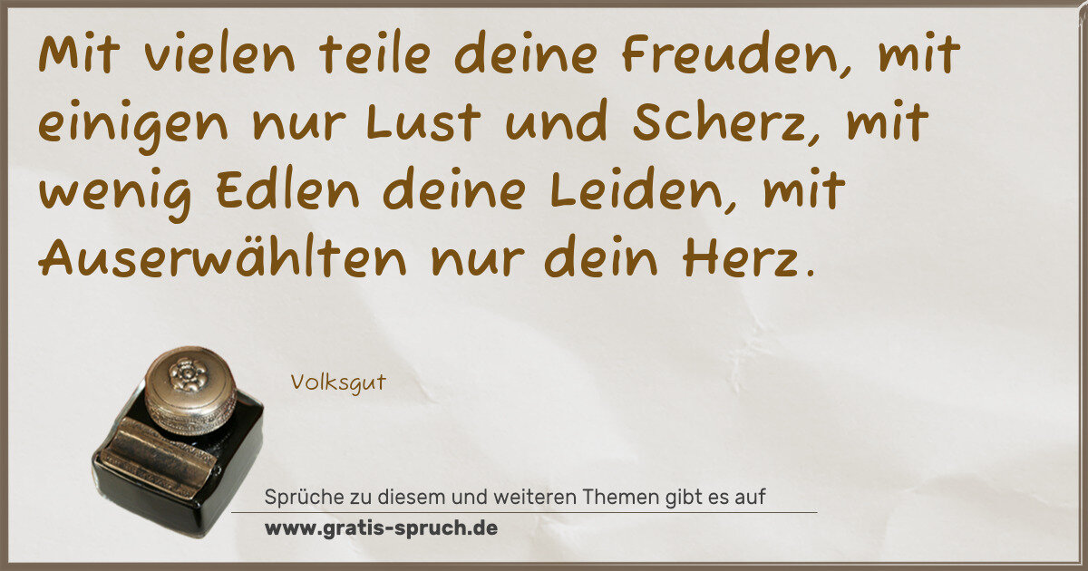 Mit vielen teile deine Freuden, mit einigen nur Lust und Scherz, mit wenig Edlen deine Leiden, mit Auserwählten nur dein Herz.
