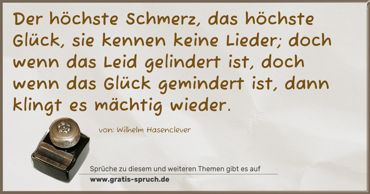 Der höchste Schmerz, das höchste Glück, sie kennen keine Lieder; doch wenn das Leid gelindert ist, doch wenn das Glück gemindert ist, dann klingt es mächtig wieder.