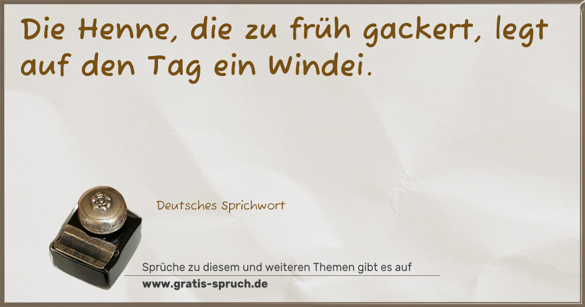 Die Henne, die zu früh gackert, legt auf den Tag ein Windei.