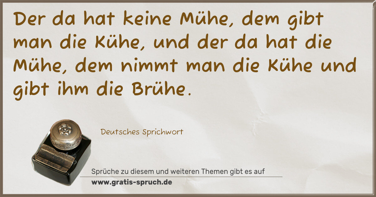 Der da hat keine Mühe, dem gibt man die Kühe, und der da hat die Mühe, dem nimmt man die Kühe und gibt ihm die Brühe.