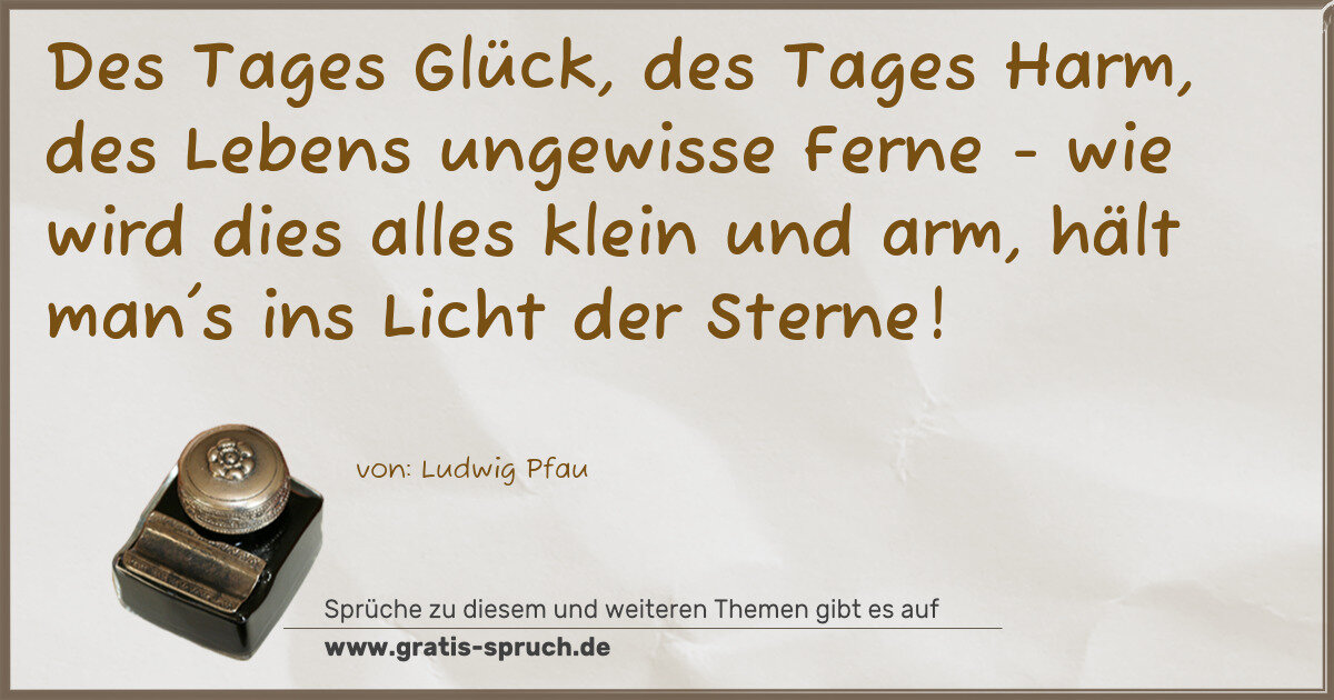 Des Tages Glück, des Tages Harm, des Lebens ungewisse Ferne - wie wird dies alles klein und arm, hält man's ins Licht der Sterne!