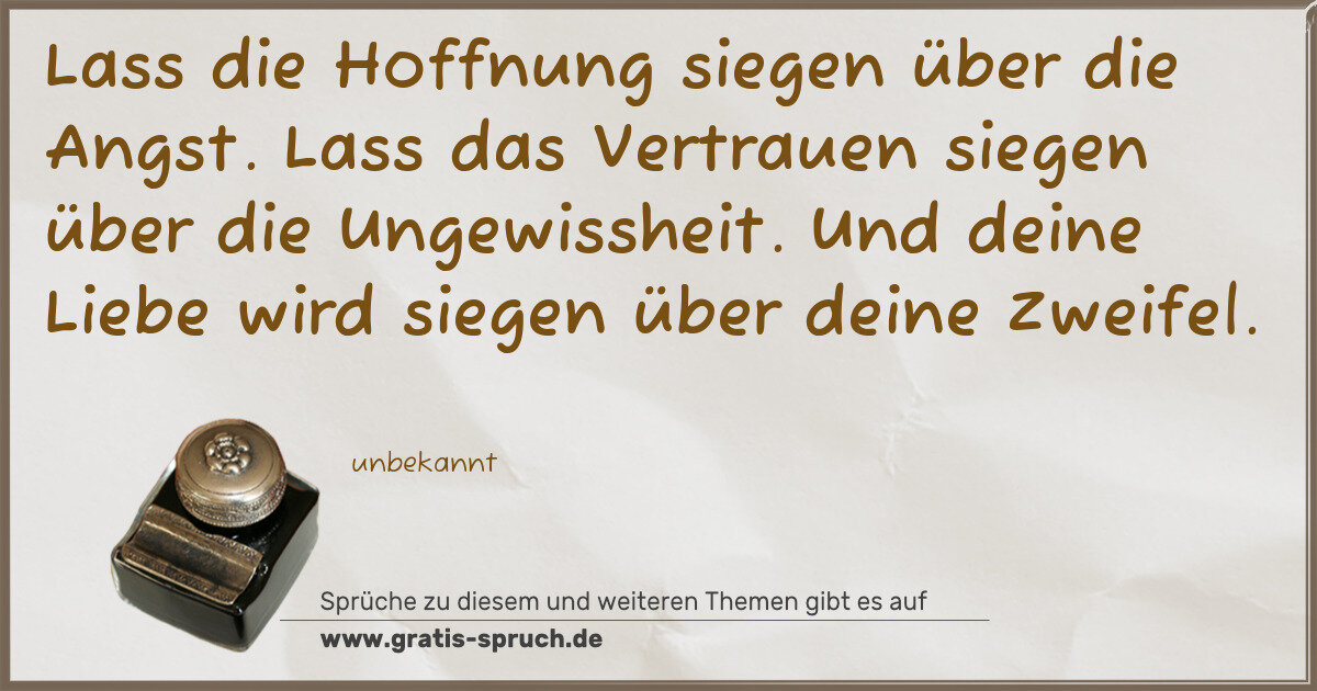 Lass die Hoffnung siegen über die Angst. Lass das Vertrauen siegen über die Ungewissheit. Und deine Liebe wird siegen über deine Zweifel.
