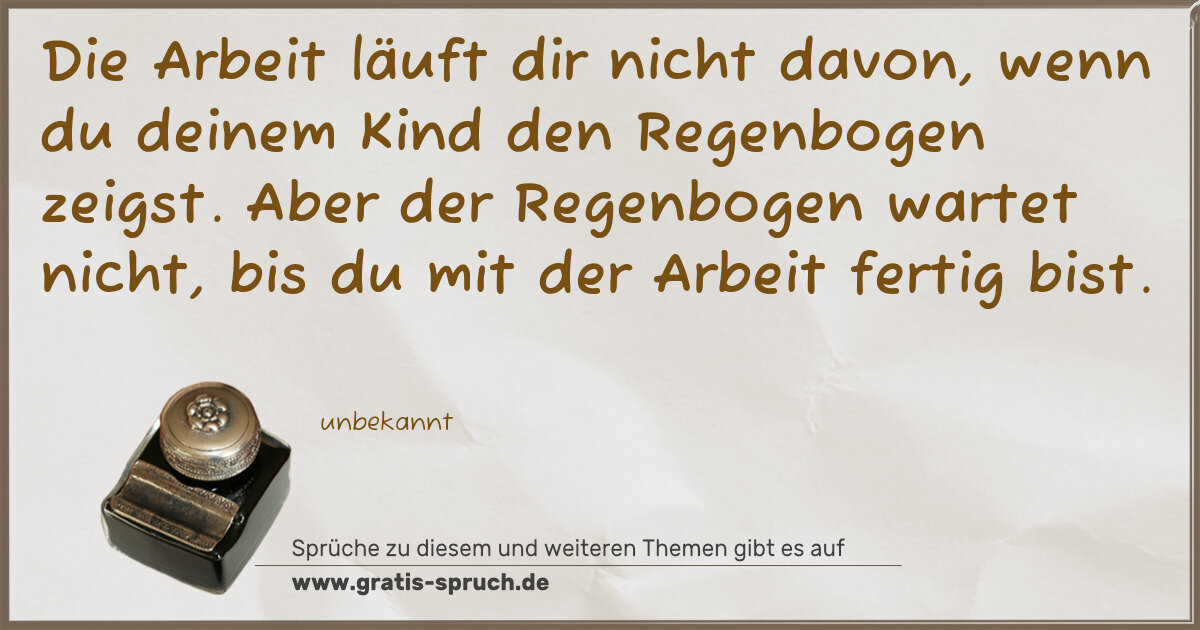 Die Arbeit läuft dir nicht davon, wenn du deinem Kind den Regenbogen zeigst. Aber der Regenbogen wartet nicht, bis du mit der Arbeit fertig bist.