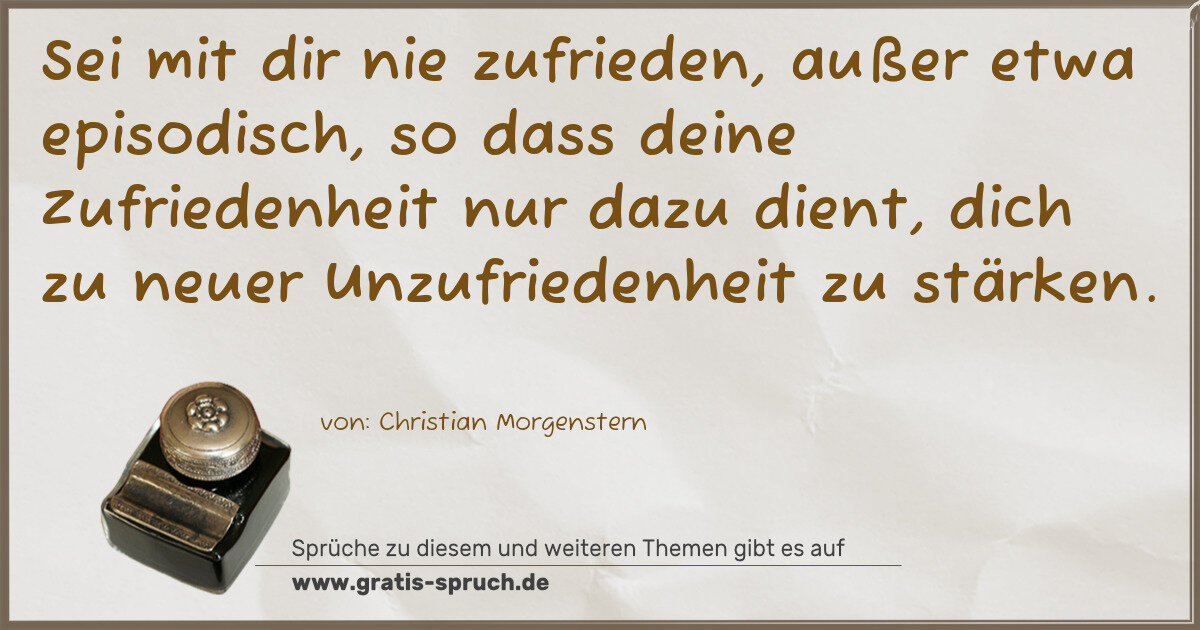 Sei mit dir nie zufrieden, außer etwa episodisch, so dass deine Zufriedenheit nur dazu dient, dich zu neuer Unzufriedenheit zu stärken.