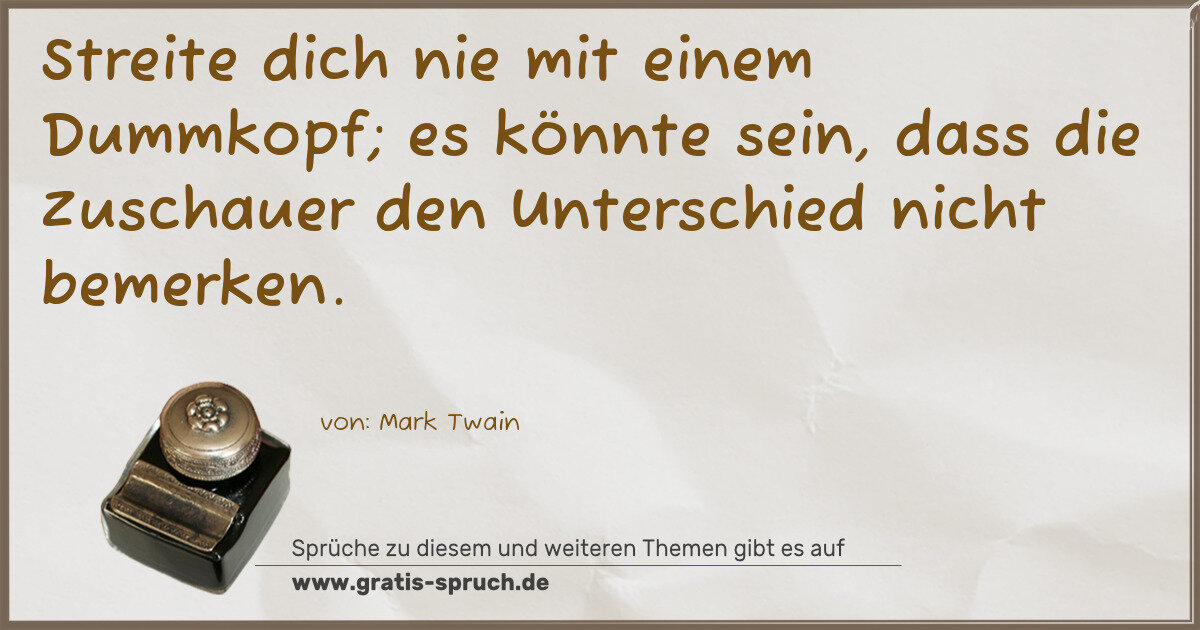 Streite dich nie mit einem Dummkopf; es könnte sein, dass die Zuschauer den Unterschied nicht bemerken.