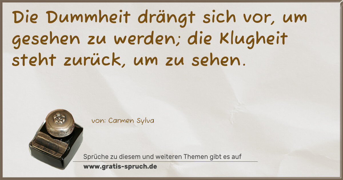 Die Dummheit drängt sich vor, um gesehen zu werden; die Klugheit steht zurück, um zu sehen.