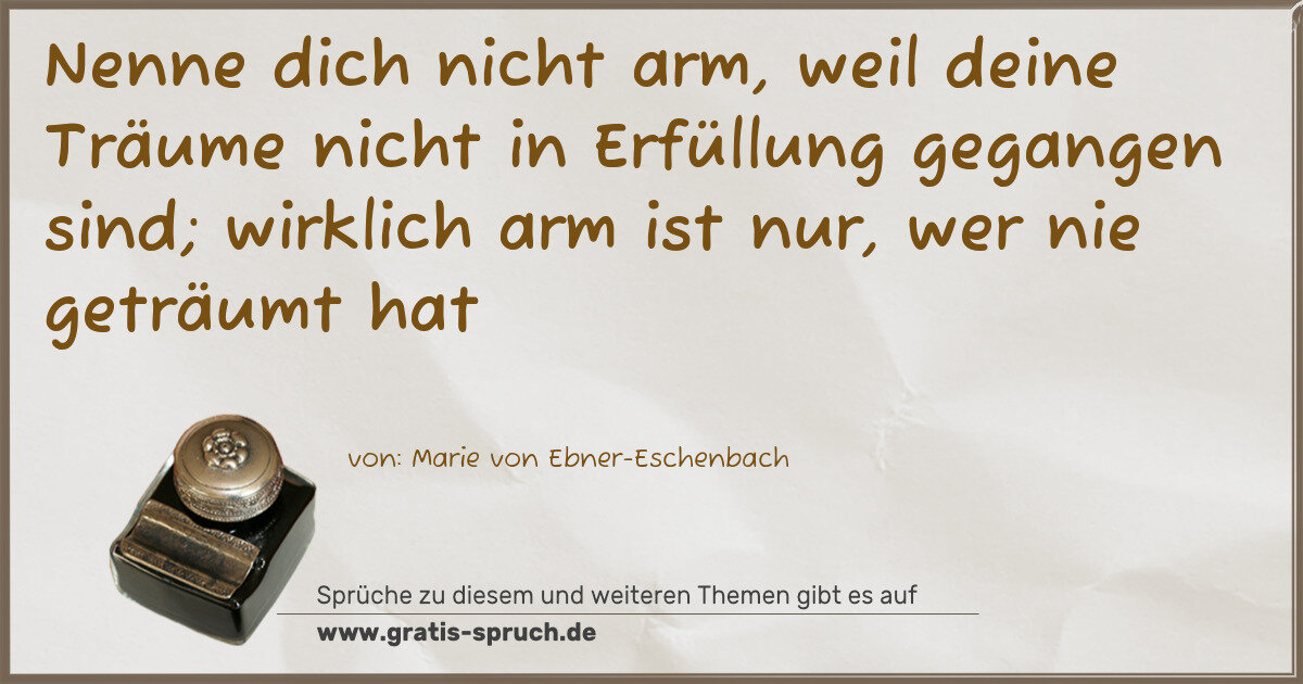 Nenne dich nicht arm, weil deine Träume nicht in Erfüllung gegangen sind; wirklich arm ist nur, wer nie geträumt hat