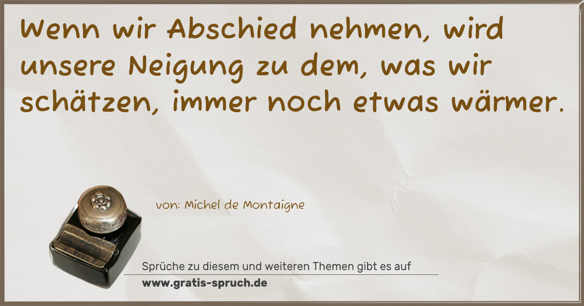 Wenn wir Abschied nehmen, wird unsere Neigung zu dem, was wir schätzen, immer noch etwas wärmer.
