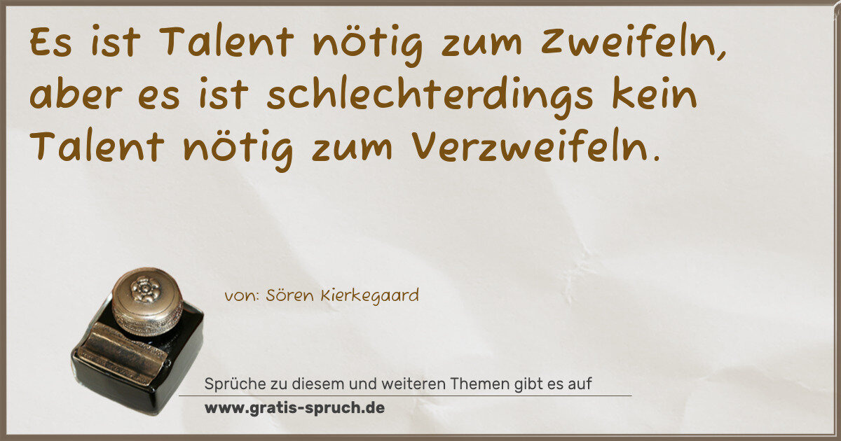 Es ist Talent nötig zum Zweifeln, aber es ist schlechterdings kein Talent nötig zum Verzweifeln.