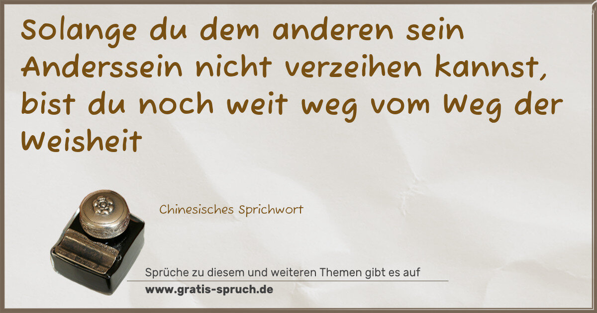 Solange du dem anderen sein Anderssein nicht verzeihen kannst, bist du noch weit weg vom Weg der Weisheit
