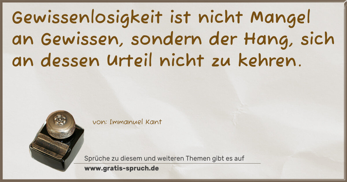 Gewissenlosigkeit ist nicht Mangel an Gewissen, sondern der Hang, sich an dessen Urteil nicht zu kehren.