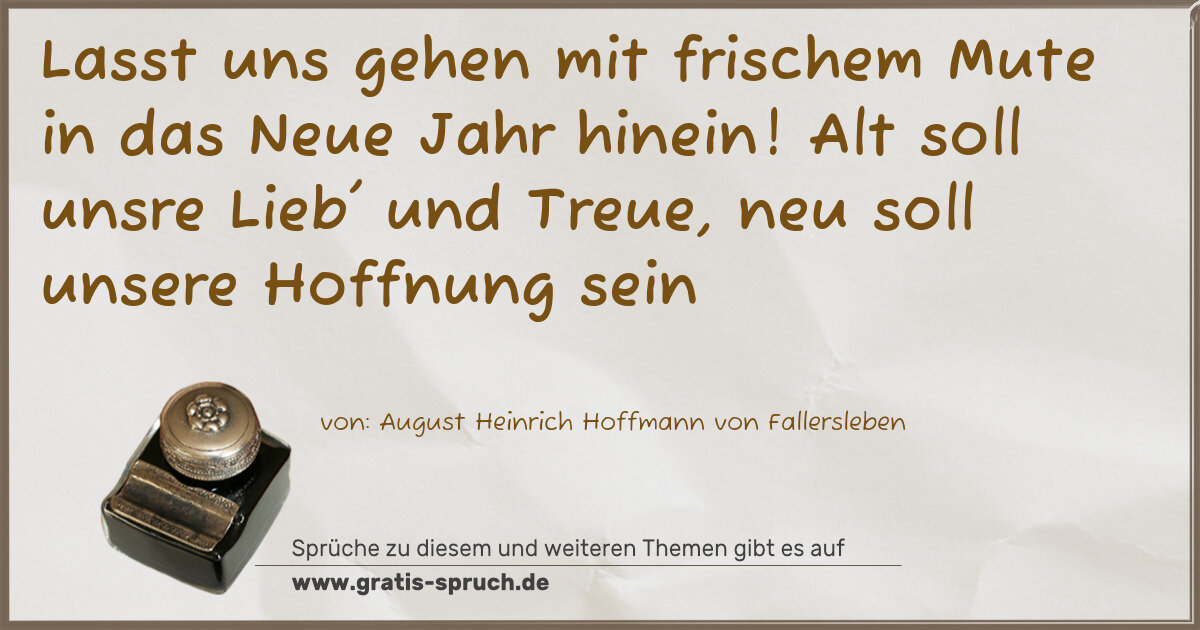 Lasst uns gehen mit frischem Mute in das Neue Jahr hinein! Alt soll unsre Lieb' und Treue, neu soll unsere Hoffnung sein