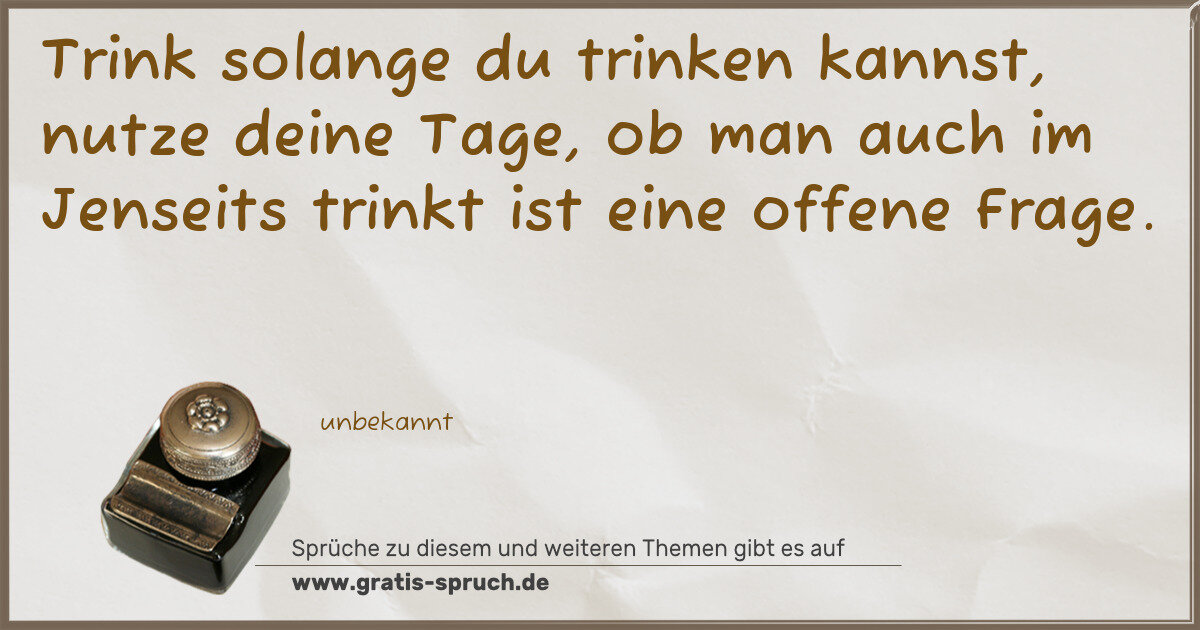 Trink solange du trinken kannst, nutze deine Tage, ob man auch im Jenseits trinkt ist eine offene Frage.