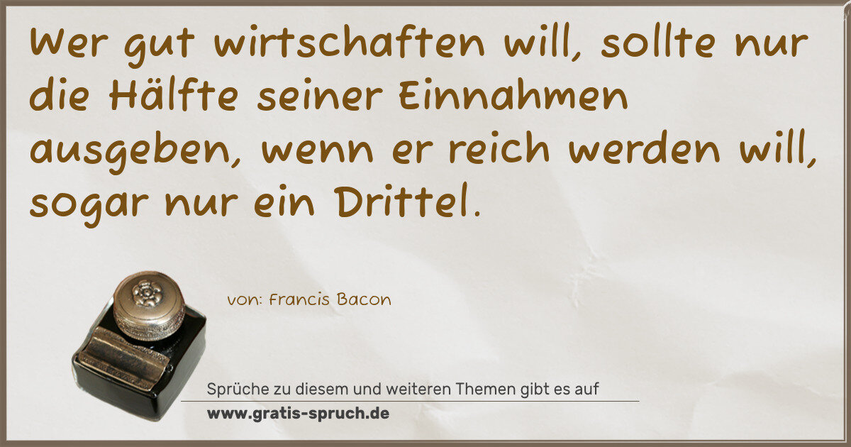 Wer gut wirtschaften will, sollte nur die Hälfte seiner Einnahmen ausgeben, wenn er reich werden will, sogar nur ein Drittel.