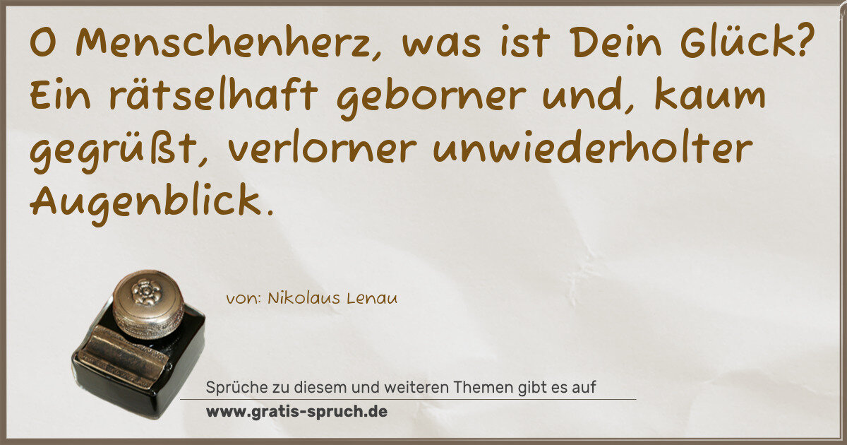 O Menschenherz, was ist Dein Glück? Ein rätselhaft geborner und, kaum gegrüßt, verlorner unwiederholter Augenblick.