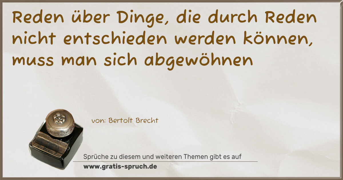 Reden über Dinge, die durch Reden nicht entschieden werden können, muss man sich abgewöhnen