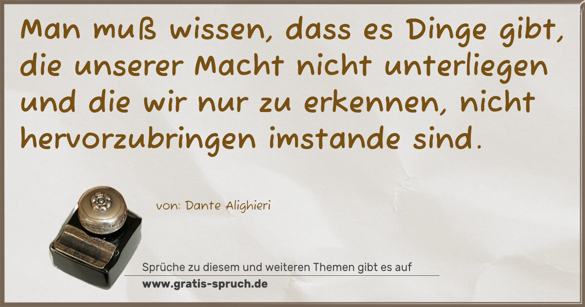 Man muß wissen, dass es Dinge gibt, die unserer Macht nicht unterliegen und die wir nur zu erkennen, nicht hervorzubringen imstande sind.