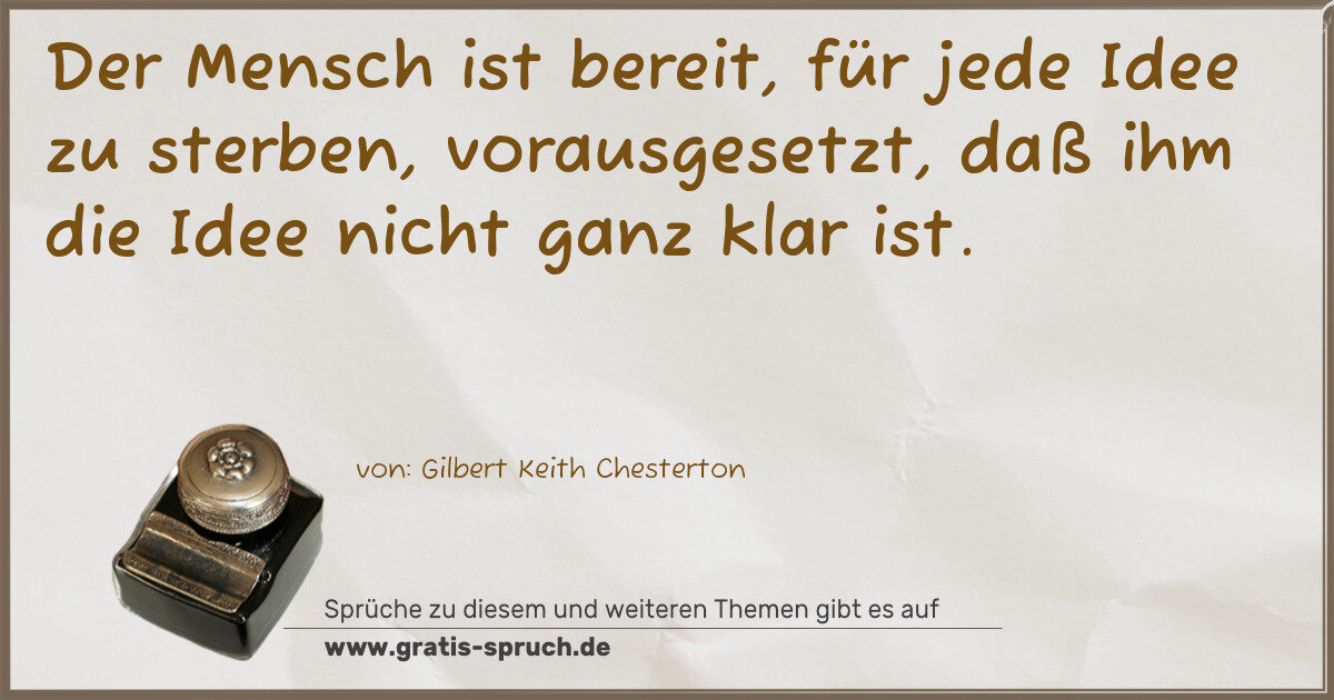 Der Mensch ist bereit, für jede Idee zu sterben, vorausgesetzt, daß ihm die Idee nicht ganz klar ist.