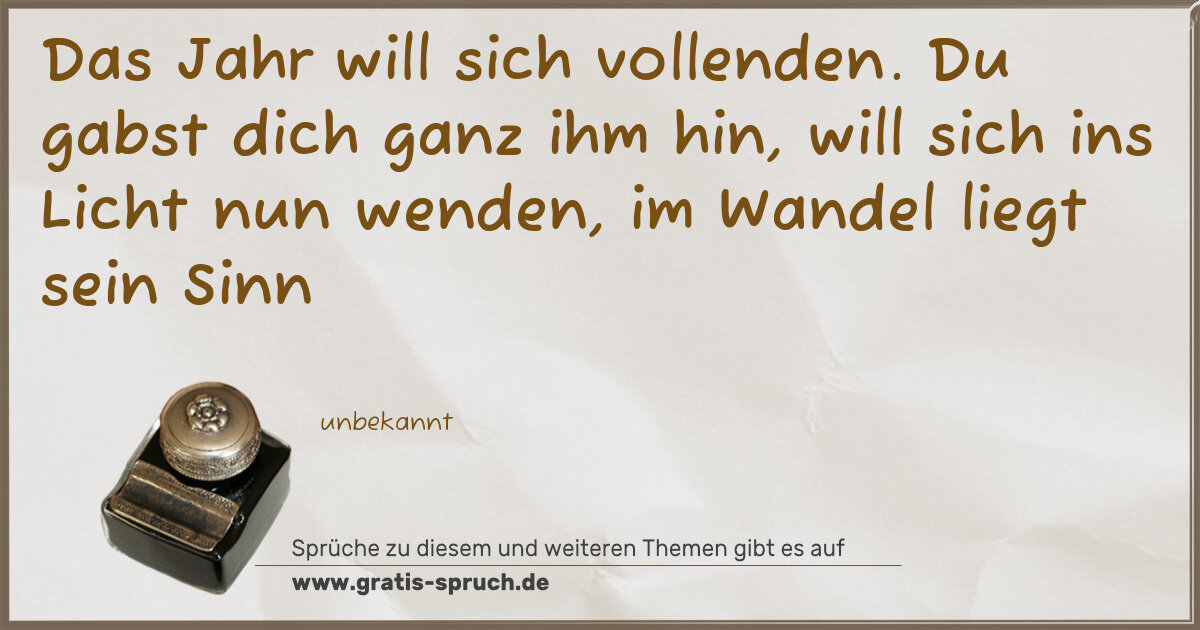 Das Jahr will sich vollenden. Du gabst dich ganz ihm hin, will sich ins Licht nun wenden, im Wandel liegt sein Sinn