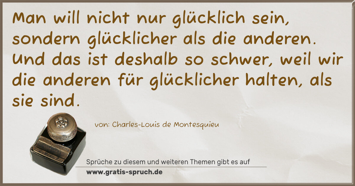 Man will nicht nur glücklich sein, sondern glücklicher als die anderen. Und das ist deshalb so schwer, weil wir die anderen für glücklicher halten, als sie sind.
