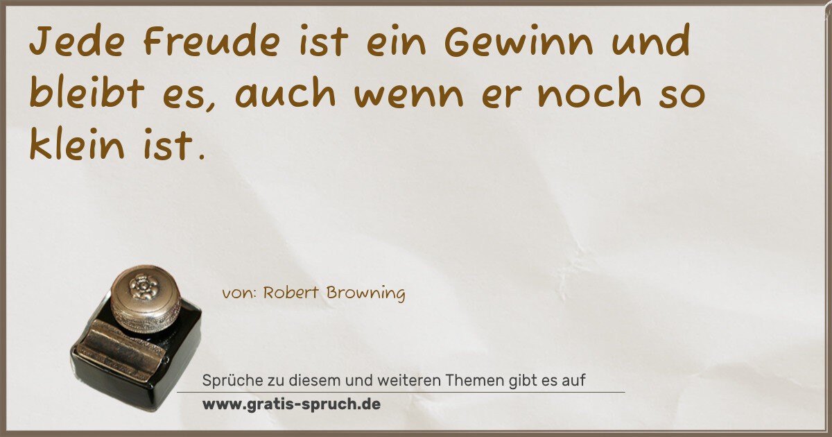 Jede Freude ist ein Gewinn und bleibt es, auch wenn er noch so klein ist.