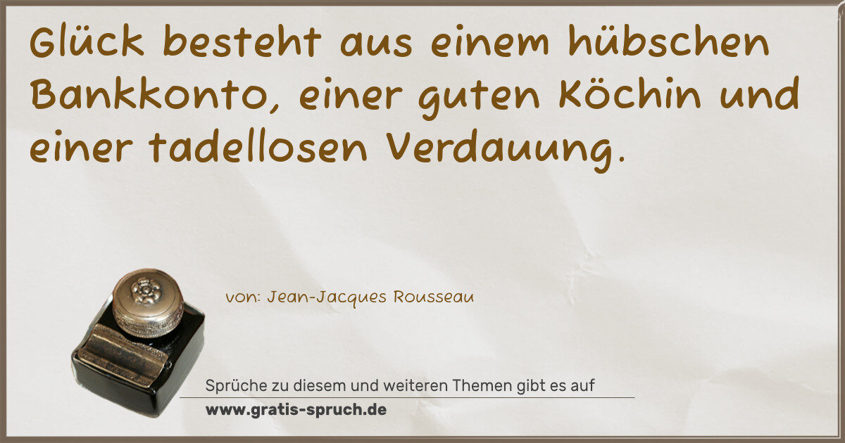 Glück besteht aus einem hübschen Bankkonto, einer guten Köchin und einer tadellosen Verdauung.