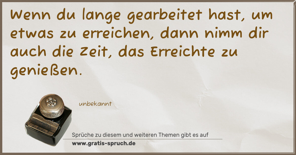 Wenn du lange gearbeitet hast, um etwas zu erreichen, dann nimm dir auch die Zeit, das Erreichte zu genießen.