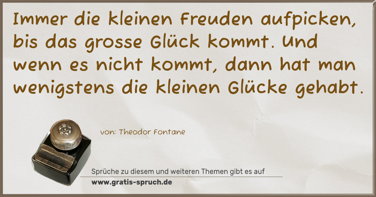 Immer die kleinen Freuden aufpicken, bis das grosse Glück kommt. Und wenn es nicht kommt, dann hat man wenigstens die kleinen Glücke gehabt.