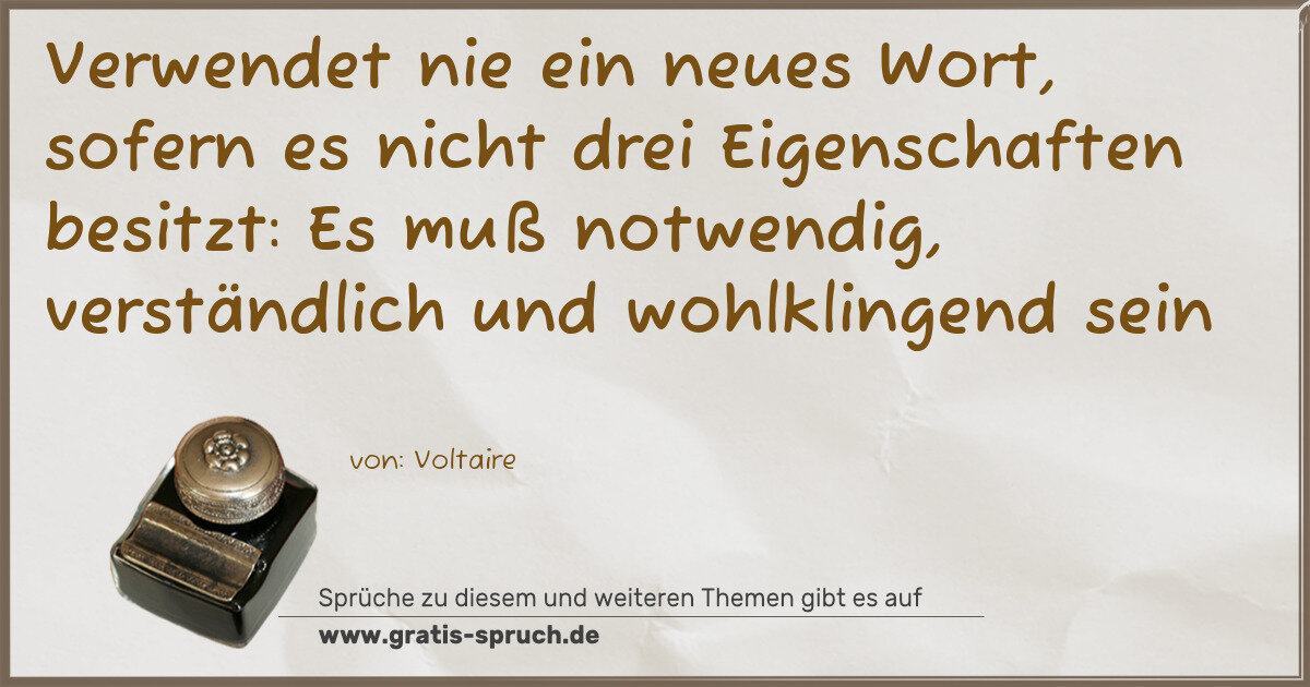 Verwendet nie ein neues Wort, sofern es nicht drei Eigenschaften besitzt: Es muß notwendig, verständlich und wohlklingend sein