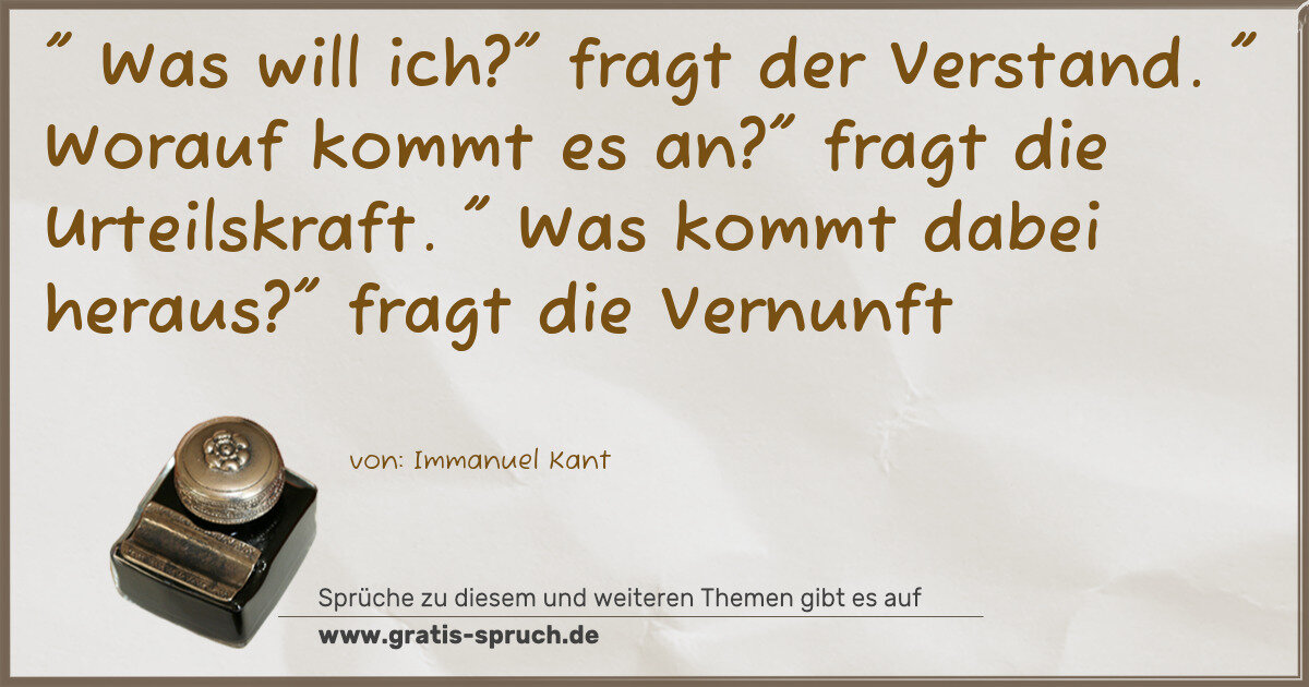 " Was will ich?" fragt der Verstand. " Worauf kommt es an?" fragt die Urteilskraft. " Was kommt dabei heraus?" fragt die Vernunft