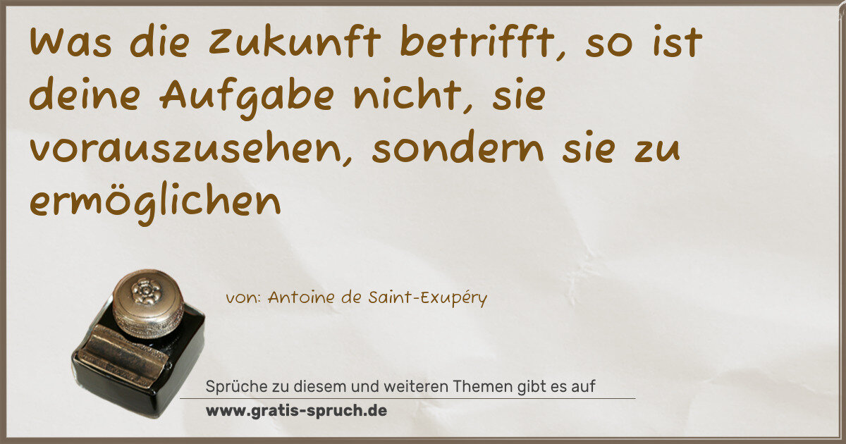 Was die Zukunft betrifft, so ist deine Aufgabe nicht, sie vorauszusehen, sondern sie zu ermöglichen