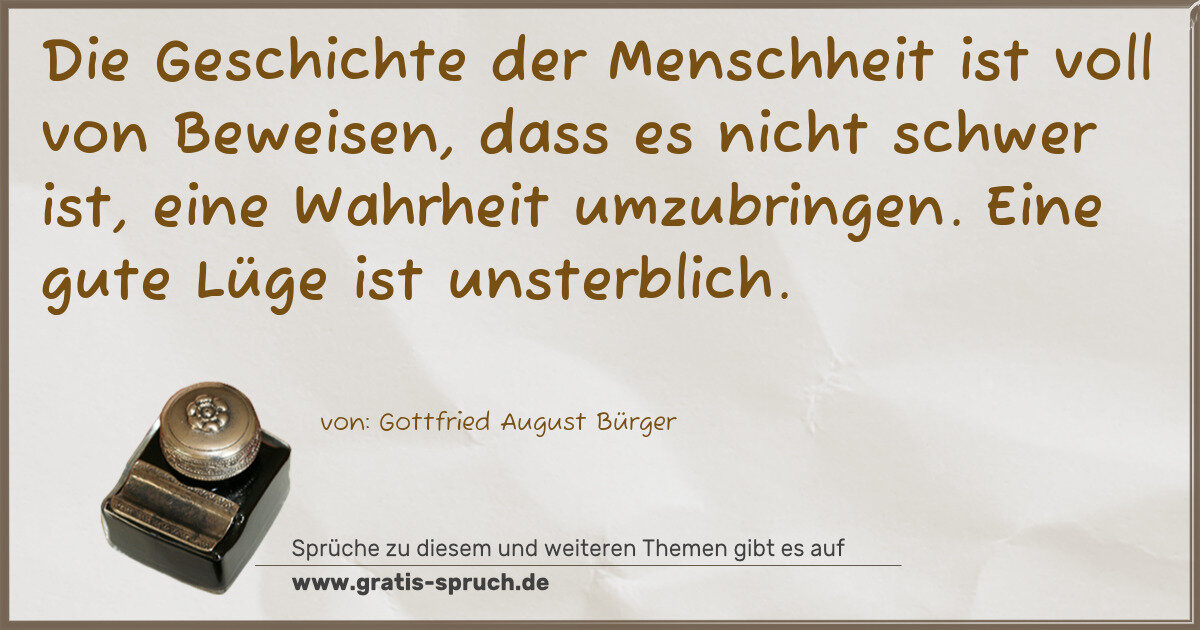 Die Geschichte der Menschheit ist voll von Beweisen, dass es nicht schwer ist, eine Wahrheit umzubringen. Eine gute Lüge ist unsterblich.