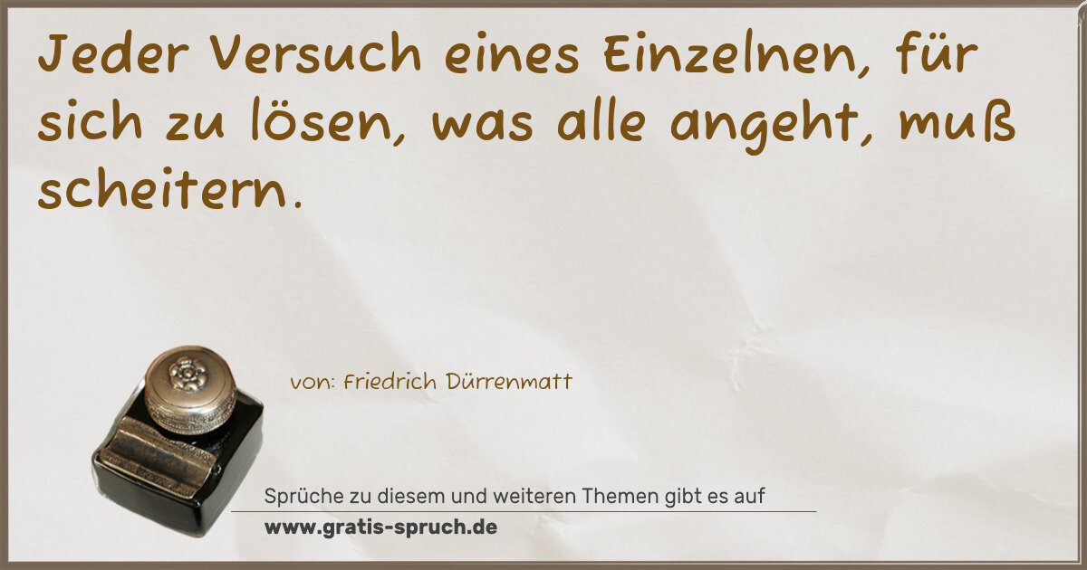 Jeder Versuch eines Einzelnen, für sich zu lösen, was alle angeht, muß scheitern.