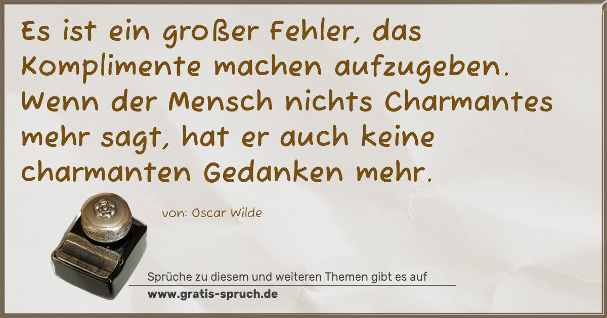 Es ist ein großer Fehler, das Komplimente machen aufzugeben. Wenn der Mensch nichts Charmantes mehr sagt, hat er auch keine charmanten Gedanken mehr.