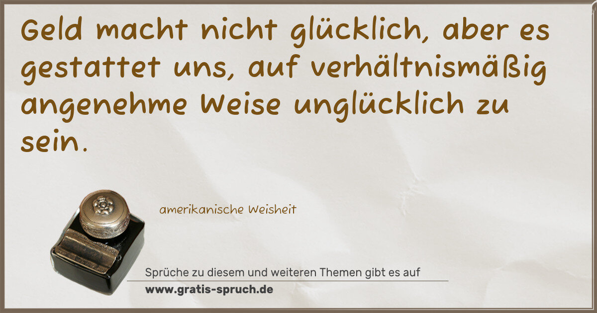 ❝Geld macht nicht glücklich, aber es gestattet uns, auf verhältnismäßig angenehme Weise unglücklich zu sein. ThemenBesitzGeldGlückReichtumUnglückWeitere Besitz Sprüche →Ähnliche SprücheLiebe ist in dem, der liebt, nicht in dem, der geliebt wird.— PlatonDer Mensch besitzt nichts Wertvolleres als seine Zeit.— Ludwig van BeethovenDas höchste Glück des Lebens besteht in der Überzeugung, geliebt zu werden.— Victor-Marie HugoGlück ist ein Weg, kein Ziel