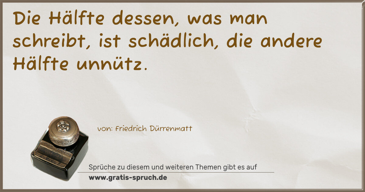 Die Hälfte dessen, was man schreibt, ist schädlich, die andere Hälfte unnütz.