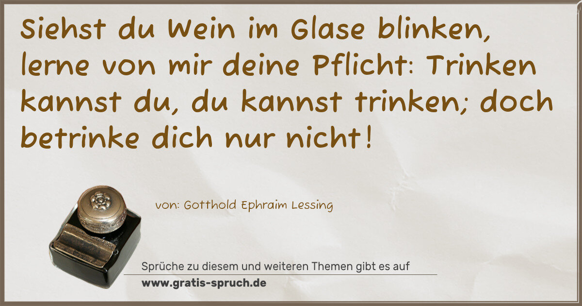 Siehst du Wein im Glase blinken, lerne von mir deine Pflicht: Trinken kannst du, du kannst trinken; doch betrinke dich nur nicht!