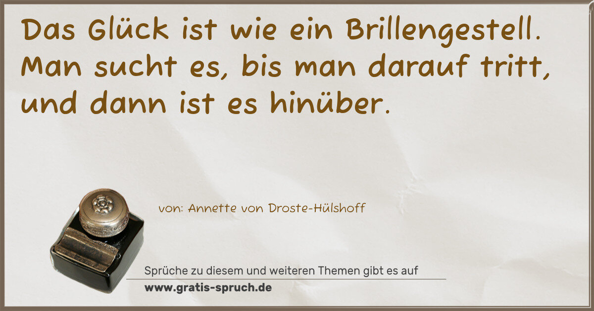 Das Glück ist wie ein Brillengestell. Man sucht es, bis man darauf tritt, und dann ist es hinüber.