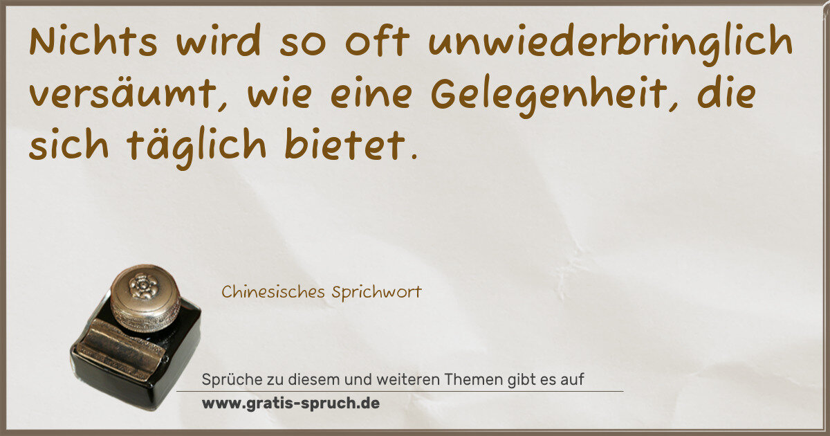 Nichts wird so oft unwiederbringlich versäumt, wie eine Gelegenheit, die sich täglich bietet.