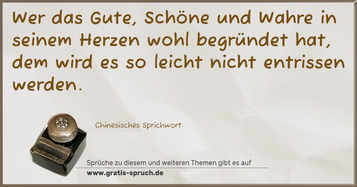 Wer das Gute, Schöne und Wahre in seinem Herzen wohl begründet hat, dem wird es so leicht nicht entrissen werden.