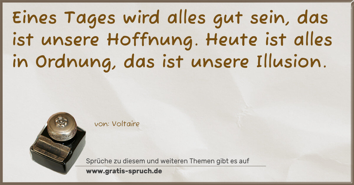Eines Tages wird alles gut sein, das ist unsere Hoffnung. Heute ist alles in Ordnung, das ist unsere Illusion.
