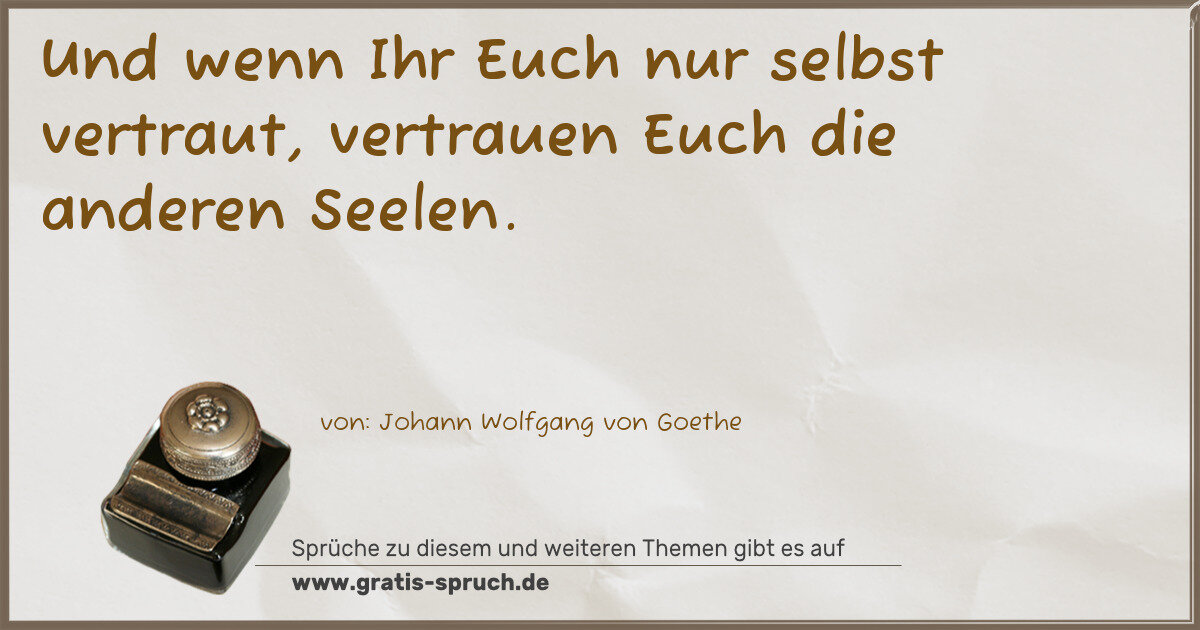 Und wenn Ihr Euch nur selbst vertraut, vertrauen Euch die anderen Seelen.