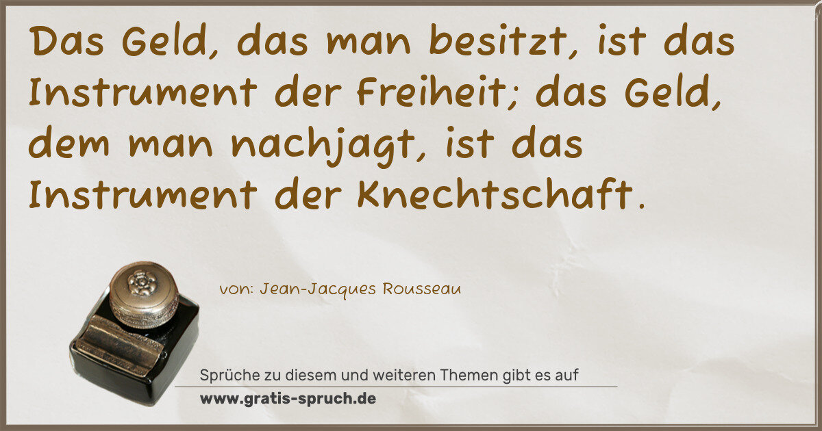 Das Geld, das man besitzt, ist das Instrument der Freiheit; das Geld, dem man nachjagt, ist das Instrument der Knechtschaft.