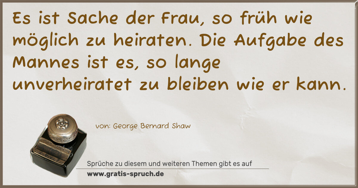 Es ist Sache der Frau, so früh wie möglich zu heiraten. Die Aufgabe des Mannes ist es, so lange unverheiratet zu bleiben wie er kann.